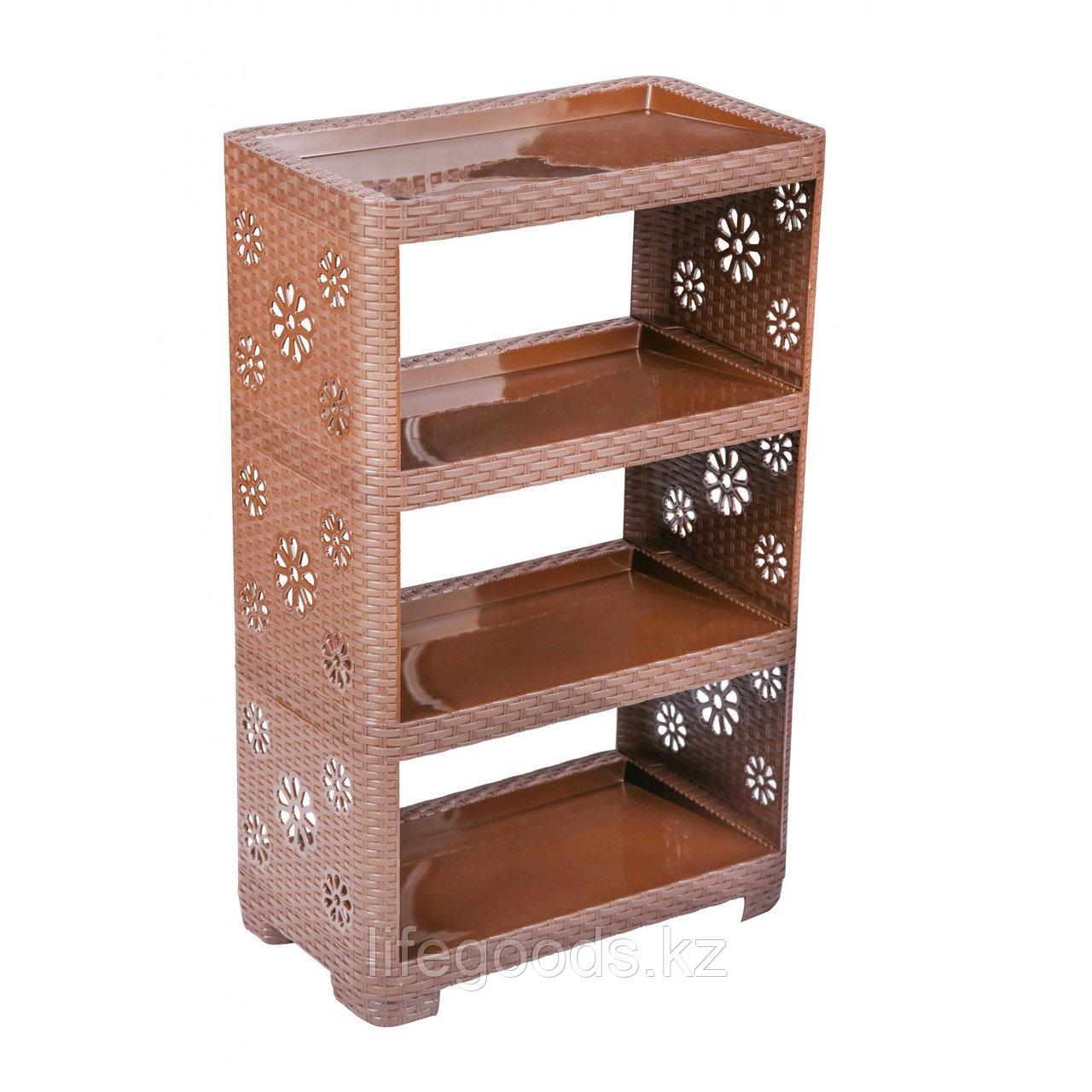 Этажерка предназначена для хранения большого количества обуви в одном месте. Изделие не занимает много места и легко впишется в любой интерьер прихожей. Изделие очень легко собирается, без единого инструмента. Этажерка имеет четыре полки, расположенные под наклоном, количество полок регулируется. Оригинальный внешний вид задает плетеная поверхность конструкции и представленное цветовое решение. Благодаря легкой конструкции, полку можно легко передвинуть в другое удобное место. Этажерка очень проста в сборке, инструкция по сборке прилагается.