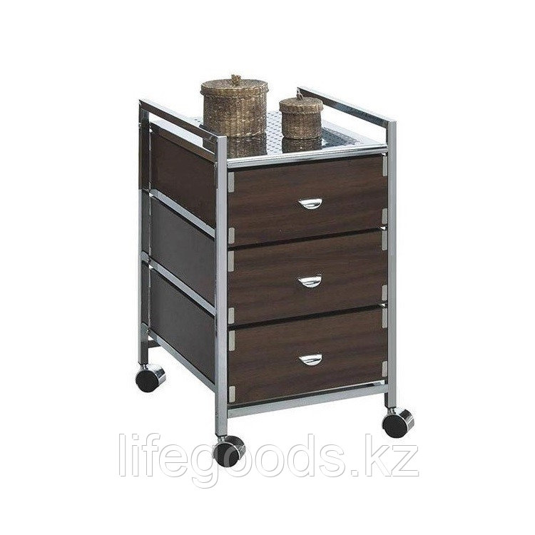 Универсальный мобильный комод будет полезен для хранения вещей дома, в салонах красоты или СПА-салонах. Каркас комода сделан из хромированной стали, выдвижные полки из МДФ материала. Под основанием конструкции имеются колесики. Колеса комода вращаются во всех четырех направлениях, что поможет легко перемещать ее при необходимости. Компактный размер позволит использовать ее даже в небольших помещениях. Подойдет как для рабочих, так и для бытовых целей. Благодаря современному дизайну, изделие подходит для использования в помещениях разного стиля.